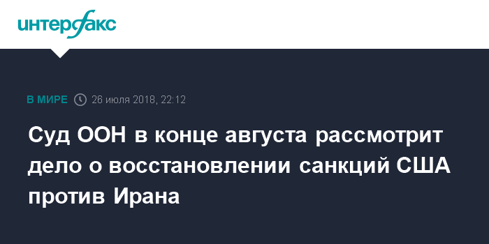 Суд ООН в конце августа рассмотрит дело о восстановлении санкций США против Ирана