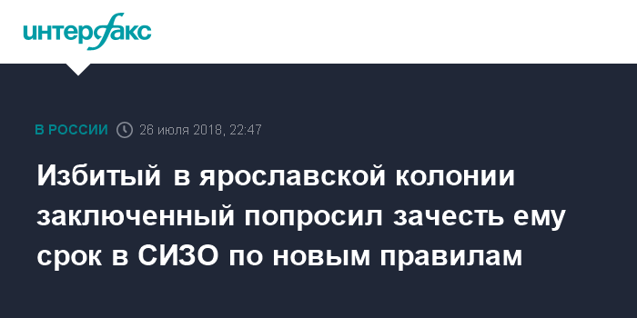 Избитый в ярославской колонии заключенный попросил зачесть ему срок в СИЗО по новым правилам