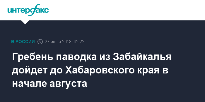 Гребень паводка из Забайкалья дойдет до Хабаровского края в начале августа