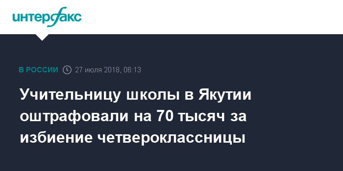 Учительницу школы в Якутии оштрафовали на 70 тысяч за избиение четвероклассницы