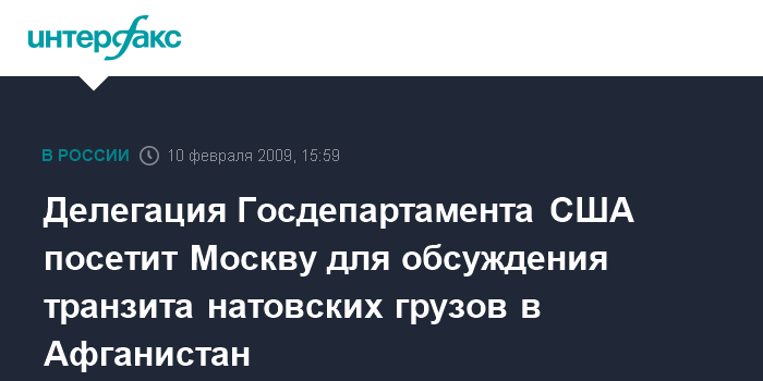"Последние несколько месяцев мы обсуждали с Россией, как можно углубить наше сотрудничество в Афганистане в таких областях, как выполнение соглашения о транзите между РФ и НАТО, взаимодействие по предоставлению Афганистану военной и другой помощи, борьба с терроризмом и контрабандой наркотиков. 10-11 февраля Москву посетит делегация во главе с заместителем помощника госсекретаря П.Муном, чтобы обсудить эти вопросы более детально", - сообщили "Интерфаксу" в посольстве США в Москве.