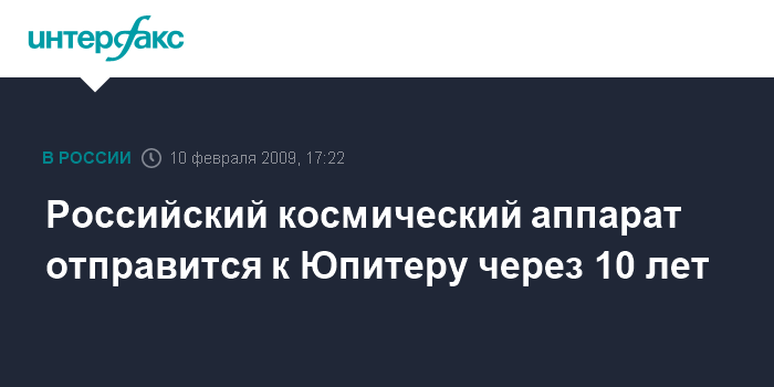 Москва. 10 февраля. INTERFAX.RU - Космический аппарат, разрабатываемый российскими учеными для посадки на Европу, спутник Юпитера, будет готов к запуску к 2020 году.