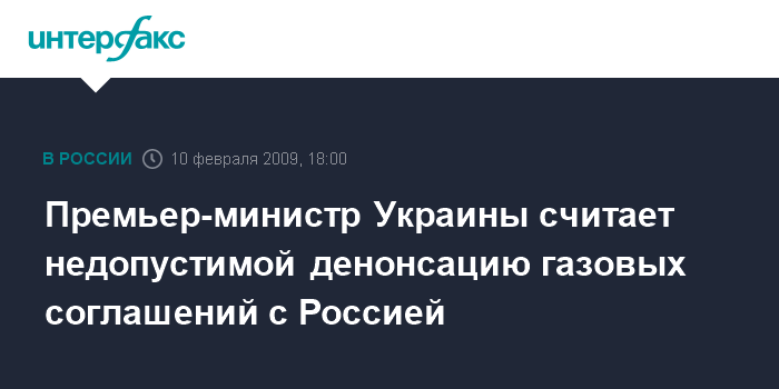Москва. 10 февраля. INTERFAX.RU - Премьер-министр Юлия Тимошенко выступила категорически против денонсации украинско-российских соглашений по газу.