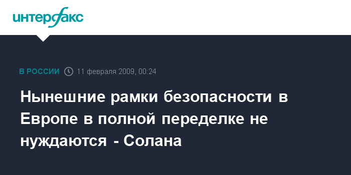 Нынешние рамки безопасности в Европе в полной переделке не нуждаются - Солана