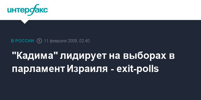 Лондон. 11 февраля. ИНТЕРФАКС - По данным опросов на выходе из избирательных участков, на парламентских выборах в Израиле с незначительным преимуществом лидирует партия "Кадима", сообщает в среду телерадиокорпорация Би-би-си.