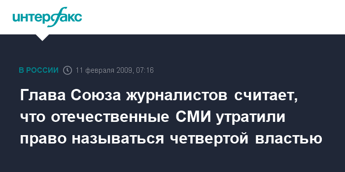 Глава Союза журналистов считает, что отечественные СМИ утратили право называться четвертой властью