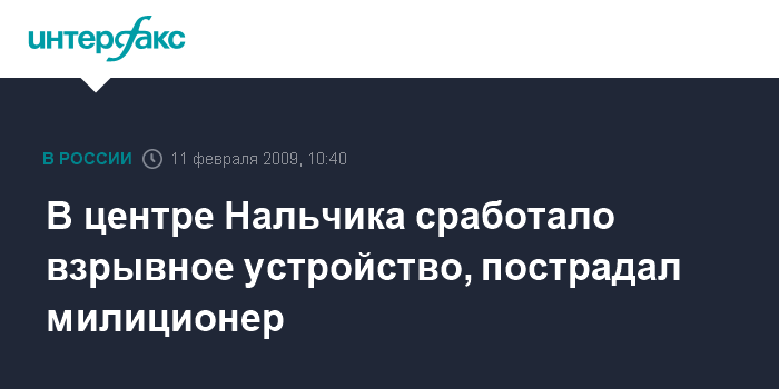Москва. 11 февраля. INTERFAX.RU - Во вторник вечером около 22:40 в Нальчике сработало взрывное устройство.