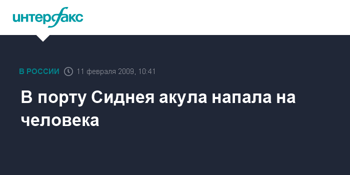 Москва. 11 февраля. INTERFAX.RU - Сильные травмы от нападения акулы получил 30-летний австралиец, купавшийся неподалеку от военно-морской базы Гарден-Айленд в зоне сиднейского порта, сообщает в среду австралийская телерадиокорпорация ABC. По ее данным, пострадавший с травмами руки и ноги находится в сознании. Он доставлен в местную больницу.