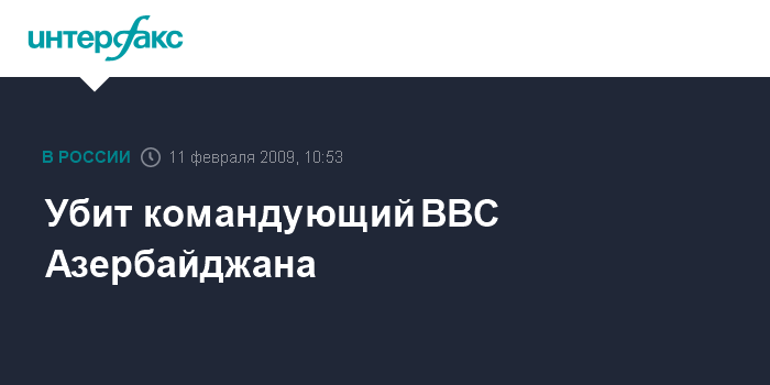 Москва. 11 февраля. INTERFAX.RU - Командующий ВВС Азербайджана генерал Раиль Рзаев был убит в среду утром, сообщил агентству "Интерфакс-Азербайджан" источник в правоохранительных органах.