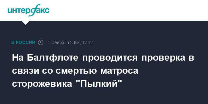 Москва. 11 февраля. INTERFAX.RU - Hа Балтийском флоте (БФ) сотрудники военно-следственного управления проводят доследственную проверку по факту смерти матроса из экипажа сторожевого корабля "Пылкий", сообщил "Интерфаксу" источник в штабе флота.