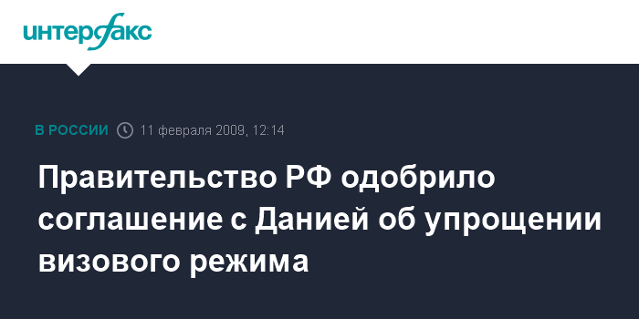 Правительство РФ одобрило соглашение с Данией об упрощении визового режима