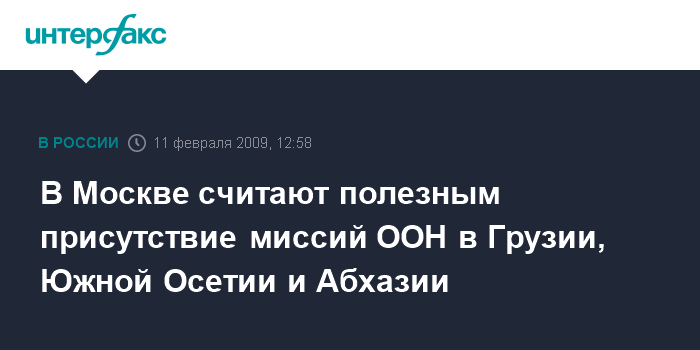 В Москве считают полезным присутствие миссий ООН в Грузии, Южной Осетии и Абхазии