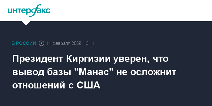 Президент Киргизии уверен, что вывод базы "Манас" не осложнит отношений с США