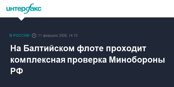 Москва. 11 февраля. INTERFAX.RU - Hа Балтийском флоте (БФ) проходит комплексная проверка центральных органов управления Минобороны РФ, сообщил "Интерфаксу" начальник пресс-служба БФ капитан 1 ранга Юрий Куроедов. По его словам, "группа офицеров центральных органов управления Минобороны РФ проводит плановую проверку частей БФ. Инспекции подвергнуты также и органы военного управления флота".
