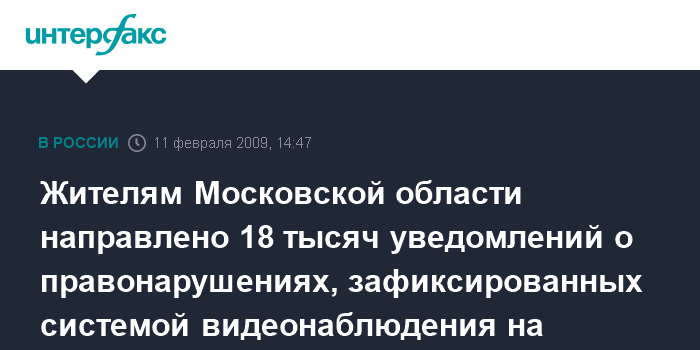 Москва. 11 февраля. INTERFAX.RU - Жителям Москвы и Московской области, а также других регионов России направлено около 18 тыс. уведомлений о правонарушениях, которые были зафиксированы системой фотовидеонаблюдения на дорогах Подмосковья, сообщил в среду журналистам начальник областного УГИБДД Сергей Сергеев.
