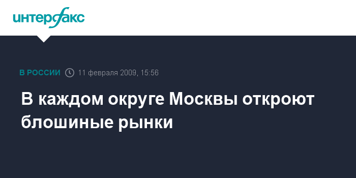 Москва. 11 февраля. INTERFAX.RU - В каждом административном округе столицы в скором времени будут открыты "блошиные" рынки, сообщил в среду журналистам заместитель руководителя департамента потребительского рынка и услуг Москвы Виталий Михайличенко.