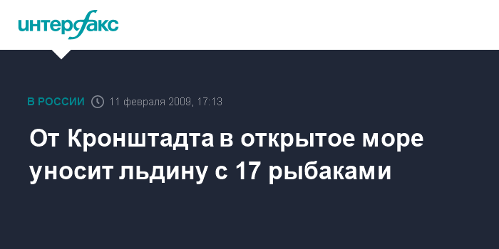 Санкт-Петербург. 11 февраля. INTERFAX.RU - В Финском заливе в районе Кронштадта терпят бедствие 17 рыбаков, оказавшихся на оторванной льдине, сообщает пресс-служба Северо-Западного регионального поисково-спасательного отряда МЧС.