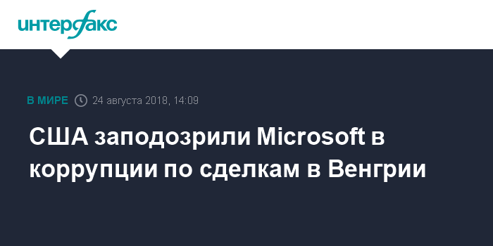 Москва. 24 августа. INTERFAX.RU - Министерство юстиции США и Комиссия по ценным бумагам и биржам (SEC) начали расследовать операции Microsoft Corp в Венгрии, подозревая компанию в коррупции при заключении контрактов на поставку программного обеспечения, пишет Dow Jones со ссылкой на информированные источники.