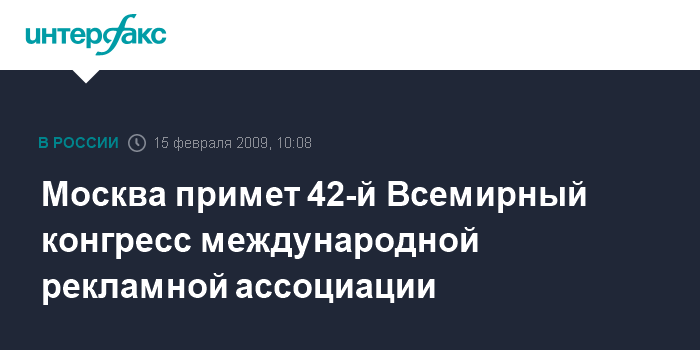 Москва. 15 февраля. INTERFAX.RU - Всемирный конгресс международной рекламной ассоциации пройдет в Москве в 2010 году, сообщили "Интерфаксу" в городской администрации.