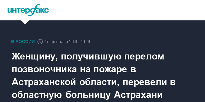 Астрахань. 15 февраля. INTERFAX.RU - Женщина, получившая тяжелые травмы во время пожара в поселке Молодежный, доставлена в Астрахань и помещена в областную клиническую больницу.