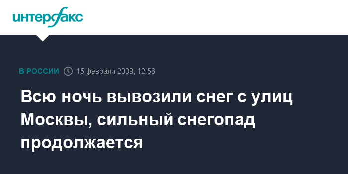 Москва. 15 февраля. INTERFAX.RU - Всю минувшую ночь столичные коммунальщики вывезли 228 тыс. кубометров снега на снегоплавильные пункты, сообщили "Интерфаксу" в комплексе жилищно-коммунального хозяйства и благоустройства города в воскресенье.