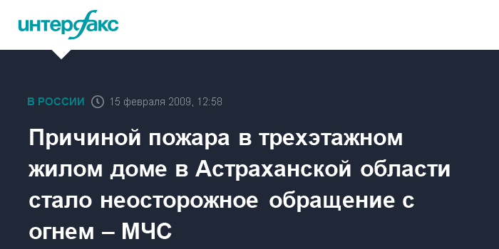 Астрахань. 15 февраля. INTERFAX.RU - Установлена, по предварительным данным, причина пожара в трехэтажном жилом доме в Астраханской области.