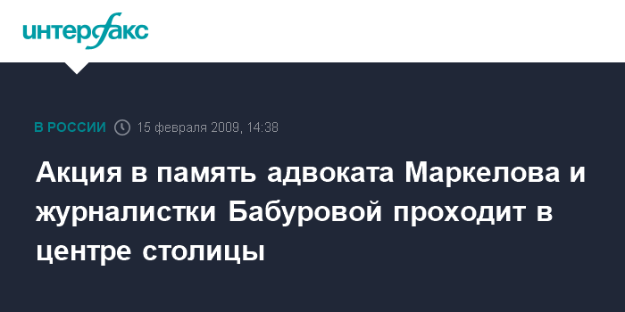 Москва. 15 февраля. INTERFAX.RU - Российские правозащитники начали в центре Москвы шествие в память об убитых адвокате Станиславе Маркелове и журналистке Анастасии Бабуровой.