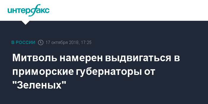 Москва. 17 октября. INTERFAX.RU - Бывший замруководителя Росприроднадзора Олег Митволь планирует выдвинуться в губернаторы Приморья от партии "Зеленые".