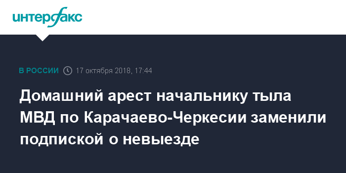 Домашний арест начальнику тыла МВД по Карачаево-Черкесии заменили подпиской о невыезде
