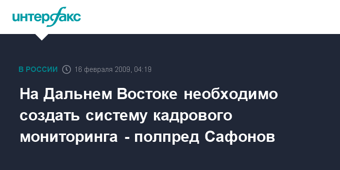 На Дальнем Востоке необходимо создать систему кадрового мониторинга - полпред Сафонов