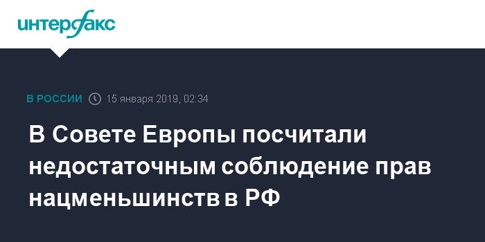 Москва. 14 января. INTERFAX.RU - При обширном этническом и национальном разнообразии России политика в области образования и законодательные норма не позволяют нацменьшинствам в РФ в полной мере пользоваться своими правами, считают в Совете Европы.