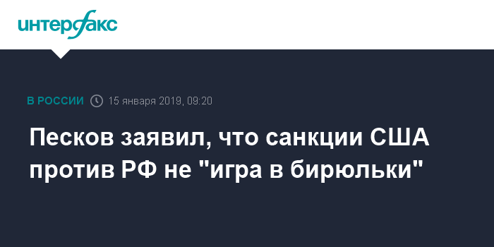 Песков заявил, что санкции США против РФ не "игра в бирюльки"