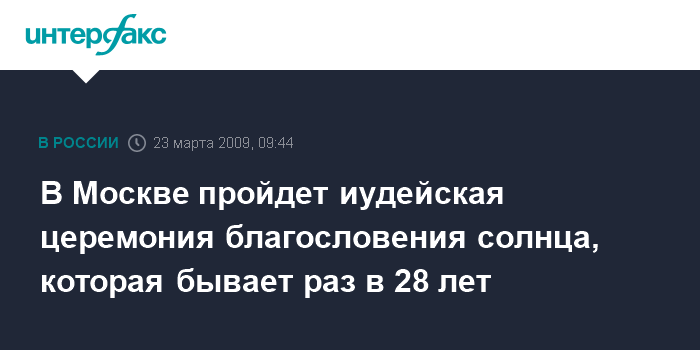 Москва. 23 марта. INTERFAX.RU - В Московском еврейском общинном центре 8 апреля состоится торжественная церемония "благословения солнца".