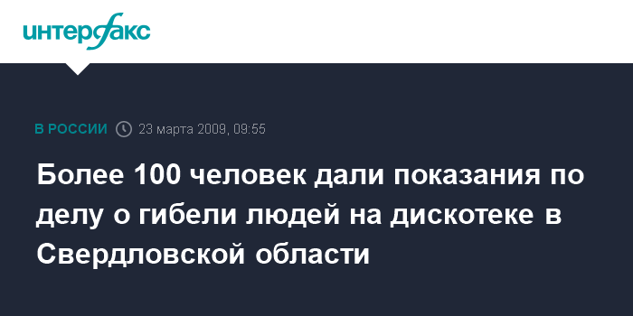 Москва. 23 марта. INTERFAX.RU - Следствие по делу о гибели четверых человек в давке на входе в дискотеку в городе Первоуральске Свердловской области опросило многочисленных свидетелей происшедшего.