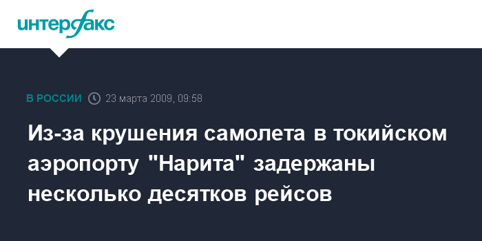 Из-за крушения самолета в токийском аэропорту "Нарита" задержаны несколько десятков рейсов