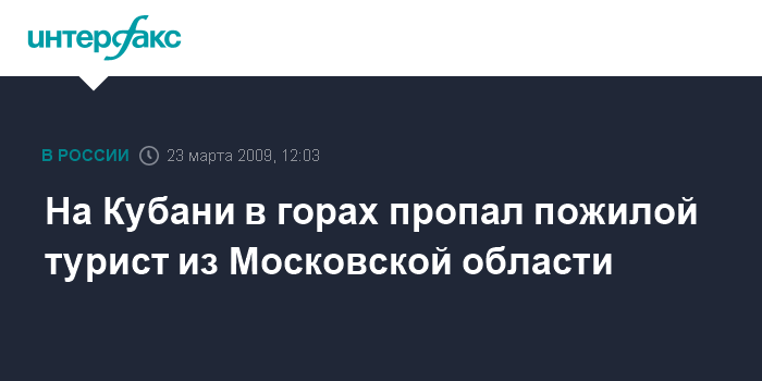 Москва. 23 марта. INTERFAX.RU - В горах в районе поселка Псебай (Краснодарский край) спасатели разыскивают 62-летнего туриста, который не вернулся из похода в назначенный срок, сообщили агентству "Интерфакс-Юг" в понедельник в пресс-службе отряда "КубаньСПАС".