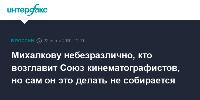 Москва. 23 марта. INTERFAX.RU - Кинорежиссер Никита Михалков не собирается возглавлять Союз кинематографистов.