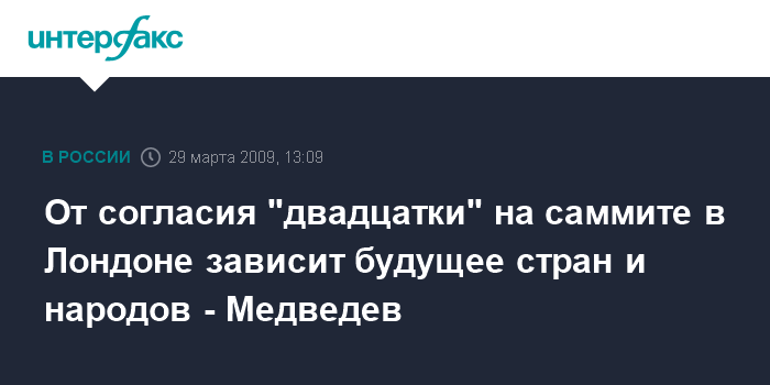 От согласия "двадцатки" на саммите в Лондоне зависит будущее стран и народов - Медведев