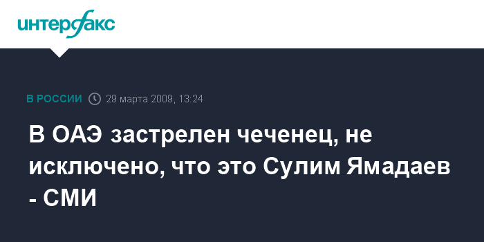 Москва. 29 марта. INTERFAX.RU - В Дубае в субботу убит житель Чечни - Сулейман Мадов, сообщили в воскресенье западные СМИ.