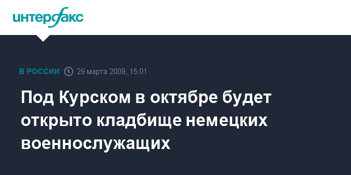 Курск. 29 марта. INTERFAX.RU - Торжественное открытие сборного кладбища немецких военнослужащих в Курске пройдет в октябре, сообщили "Интерфаксу" в среду в обладминистрации.