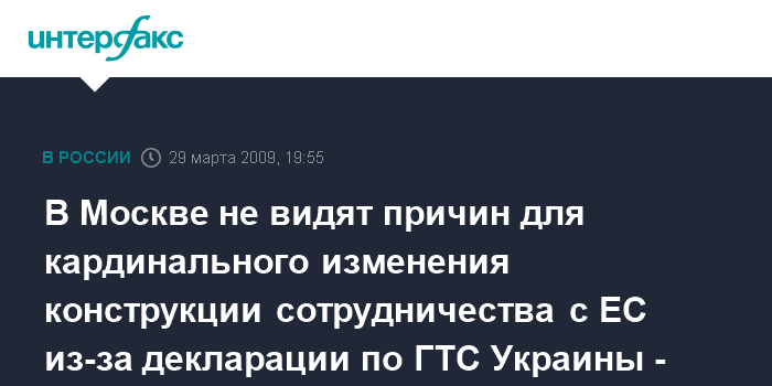 Москва. 29 марта. ИНТЕРФАКС - В Москве не намерены в ответ на заключенный в Брюсселе Украиной и Еврокомиссией меморандум по модернизации украинской газотранспортной системы (ГТС) резко пересматривать свои взаимоотношения со странами и предприятиями ЕС, заявил вице-премьер РФ Игорь Сечин.