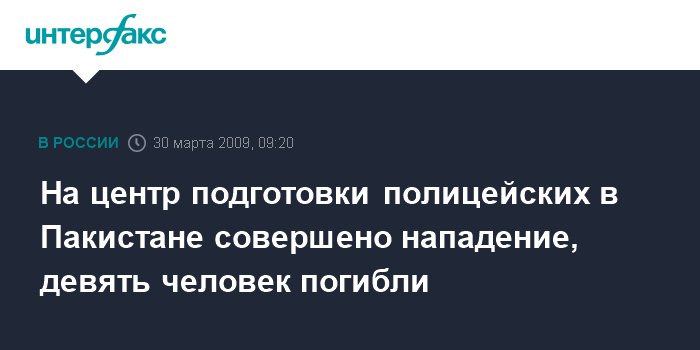 Москва. 30 марта. INTERFAX.RU - Минимум девять человек погибли и 30 получили ранения в результате нападения группы неизвестных на центр подготовки полицейских в пакистанском городе Лахоре, передают в понедельник местные СМИ.