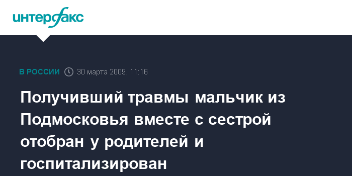 Получивший травмы мальчик из Подмосковья вместе с сестрой отобран у родителей и госпитализирован