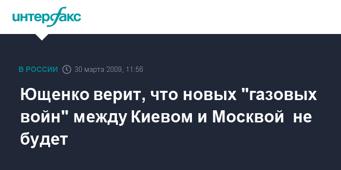 Москва. 30 марта. INTERFAX.RU - Президент Украины Виктор Ющенко считает, что негативное восприятие Россией декларации Украины и Евросоюза о реконструкции украинской газотранспортной системы не выльется в новую газовую войну между Киевом и Москвой.