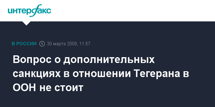 Вопрос о дополнительных санкциях в отношении Тегерана в ООН не стоит