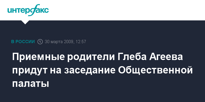 Москва. 30 марта. INTERFAX.RU - Приемные родители 3-летнего Глеба Агеева согласились принять участие в экстренном заседании комиссии Общественной палаты России по ситуации в этой семье.