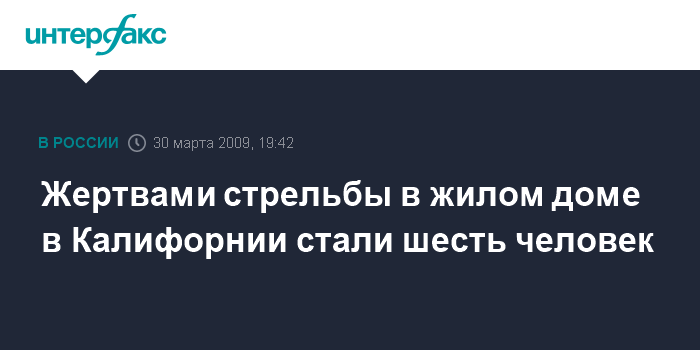 Вашингтон. 30 марта. INTERFAX.RU - В результате стрельбы, произошедшей в ночь на понедельник в жилом доме в американском городе Санта-Клара (штат Калифорния), шесть человек были убиты, включая троих детей, и еще один получил тяжелые ранения, сообщает американский телеканал CNN.