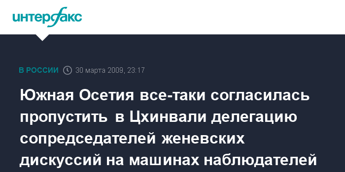 Южная Осетия все-таки согласилась пропустить в Цхинвали делегацию сопредседателей женевских дискуссий на машинах наблюдателей ОБСЕ