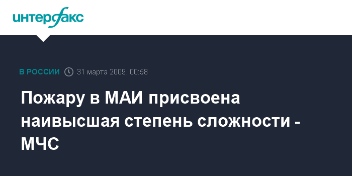 Пожару в МАИ присвоена наивысшая степень сложности - МЧС