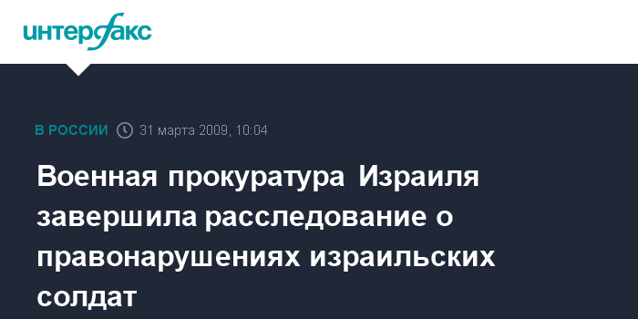 Москва. 31 марта. INTERFAX.RU - Военная прокуратура Израиля завершила расследование по делу израильских солдат, подозревавшихся в правонарушениях в отношении палестинцев в секторе Газа, сообщила в понедельник британская телерадиокорпорация Би-би-си.